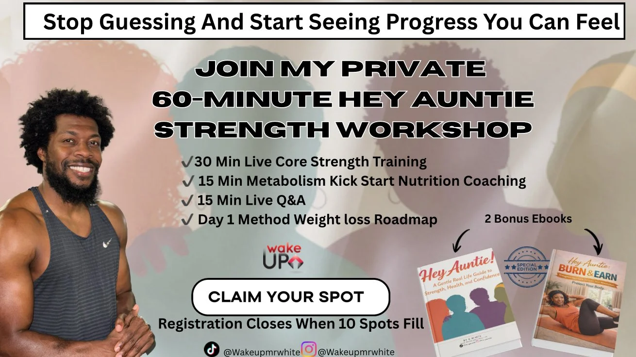 Hey Auntie stop guessing through your workouts.I’m opening a private 60-minute Hey Auntie Strength Workshop where I’ll guide 10 Aunties through simple, beginner-friendly strength exercises, metabolism-supporting nutrition, and live Q&A. Plus…